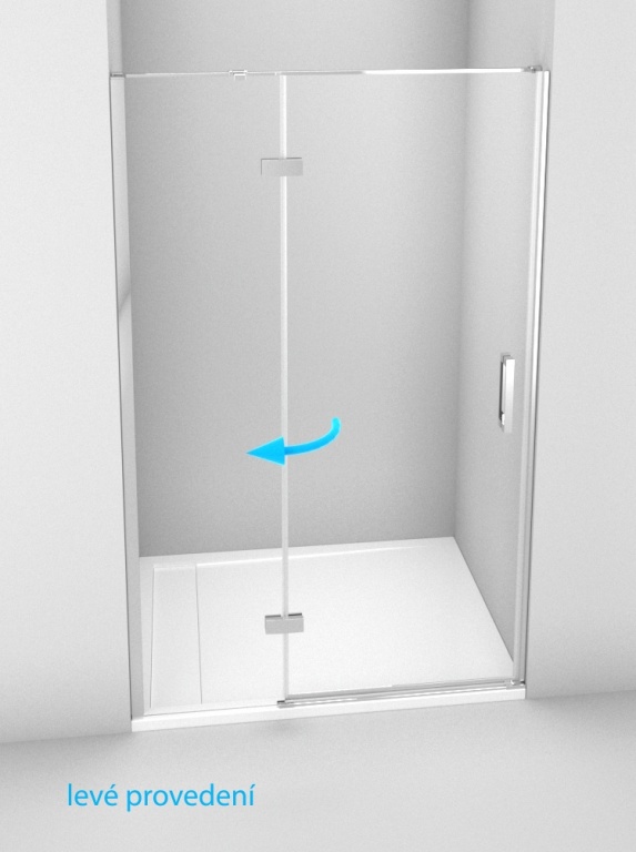 Jednodílné křídlové dveře jsou s pevným dílem spojeny pomocí otvíravého chromového pantu. Dveře jsou opatřeny velkým pohodlným madlem. Součástí je také prahová lišta a gumová těsnění, která zabraňují protékání vody. Dveře je možné kombinovat s boční pevnou stěnou, která je vyrobena stejně jako pevný díl dveří.